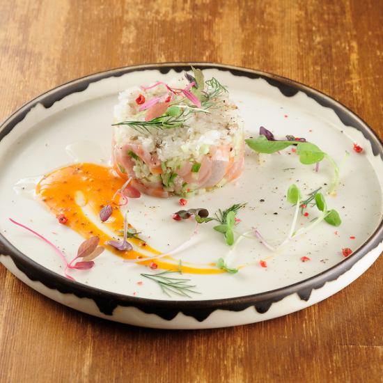 カッシーワ東通り店 新名物!スモークサーモンとささみのタルタルユッケ